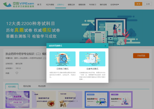 VIPExam考试库收录外语、计算机、考研、公务员、财经等12大专辑2200余个考试科目,现已收录名师精品视频课程超过10.7万课时,收录历年真题试卷与模拟试卷超过37万套。