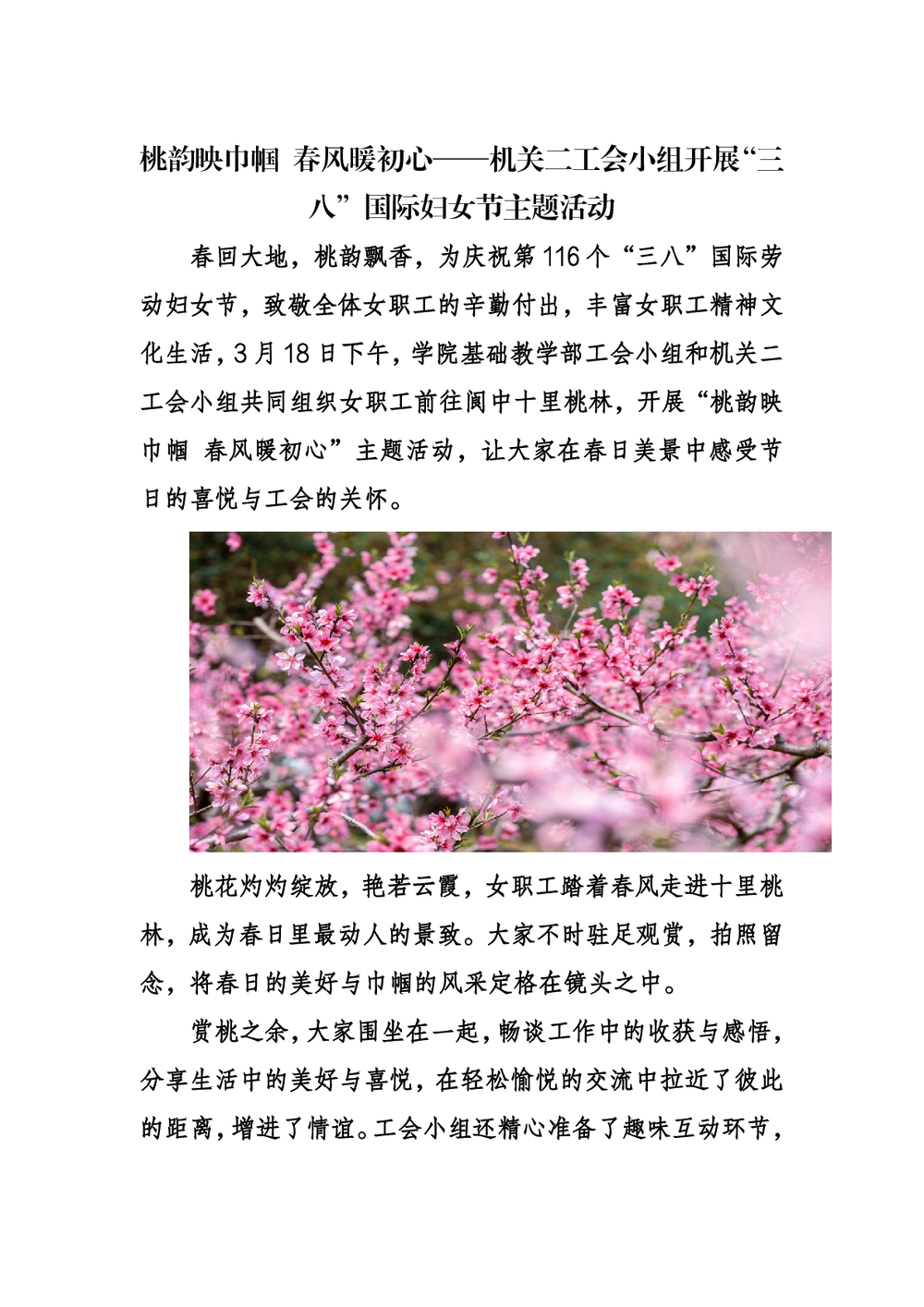基础教学部工会小组和机关二工会小组开展“桃韵映巾帼 春风暖初心”主题活动